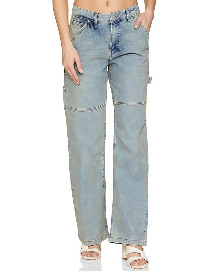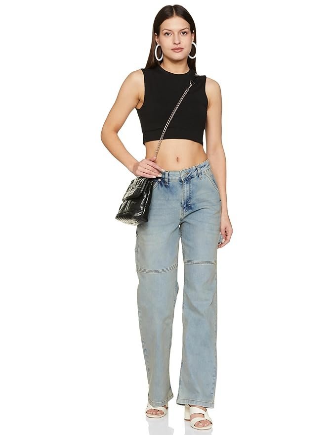 - Form flattering Jeans that is fitted through the waist and flaring out below the hips