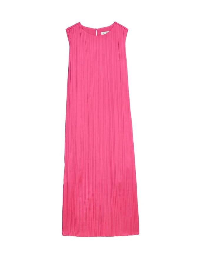 • A distinctive plisse finish adds texture to this sleeveless column dress from our Autograph collection. It’s cut to a regular fit, with a straight, body-skimming shape. The simple round neckline curves into a subtle button and zip fastening at the back. Piped trims at the neck and armholes add a neat finish. A full lining ensures that the dress is comfortable to wear. Autograph: premium investment pieces featuring contemporary cuts and refined finishing touches.