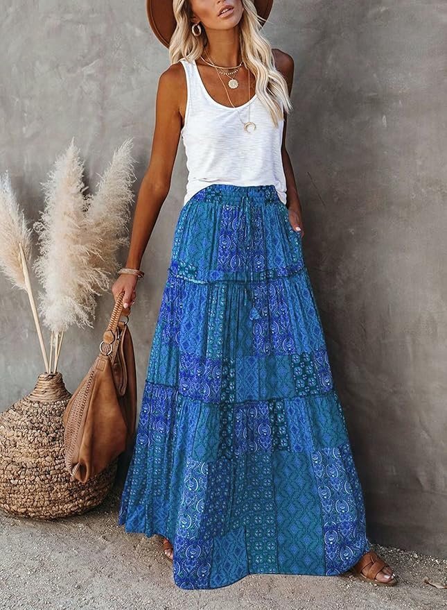 - QUALITY FLOWING MATERIAL : Boho maxi skirt, long skirts for women high waist is made of soft and skin-friendly polyester. Floral maxi skirt with pockets, womens skirt is fitted for most body shape that easy to put on or take off. Whether it is skiing or daily wear that keep you chic in all days.Hippie cute skirts can be used as a exquisite gift give your girlfriend, wife, family, friend, girls, daughter.